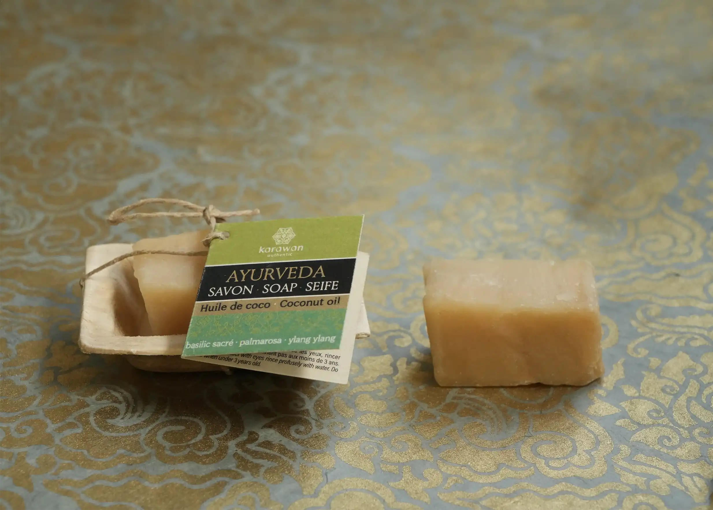 Mini Soap 20 g - Softening - Virgin coconut oil and essential oil synergies Holy basil / Neem / Palmarosa / Ylang-ylang